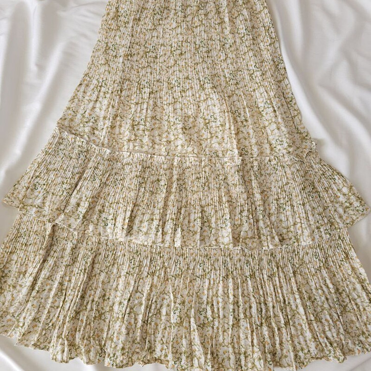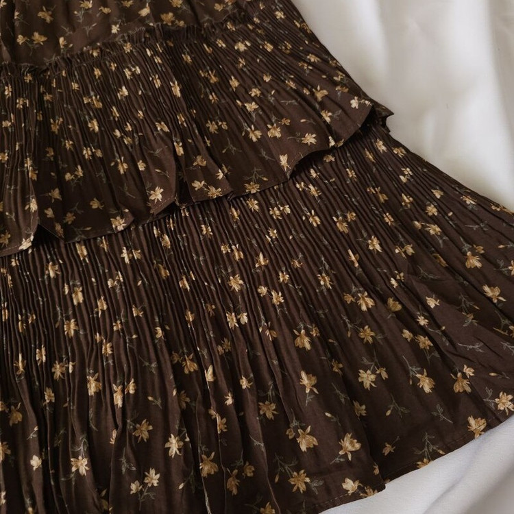 دامن حریرپلیسه استر دار خارجی زنانه قد 88 دامن10گل گلی