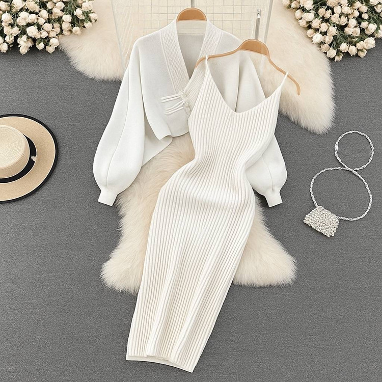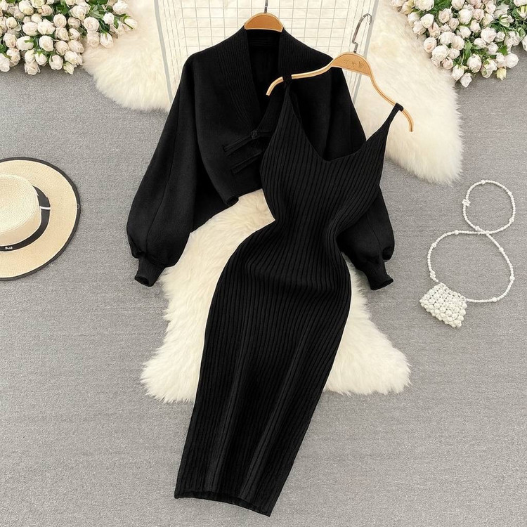 ست بافت دو تیکه خارجی زنانه کت و سارافون مجلسی ۴۹۳۱