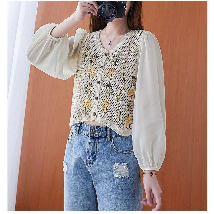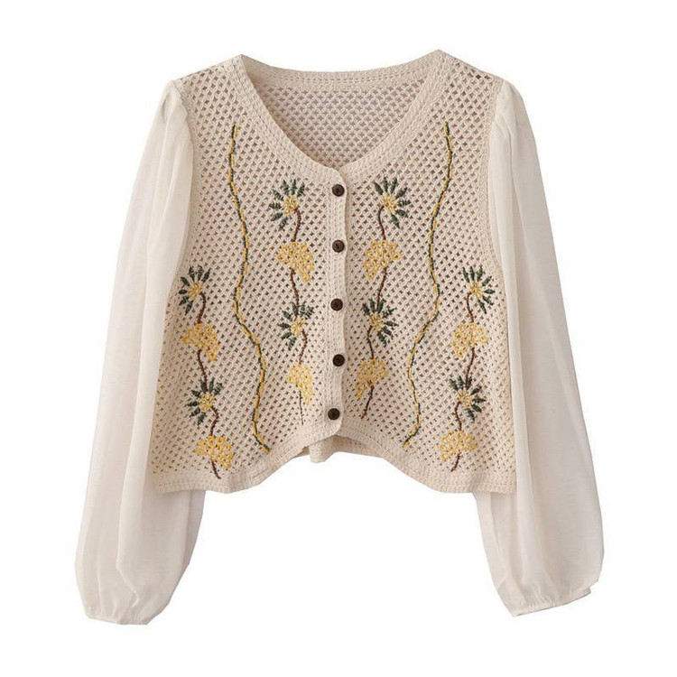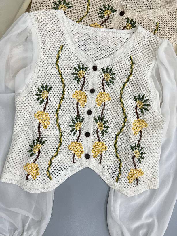 شومیز زنانه خارجی بافت قلاب دوزی ۵۳۶۸
