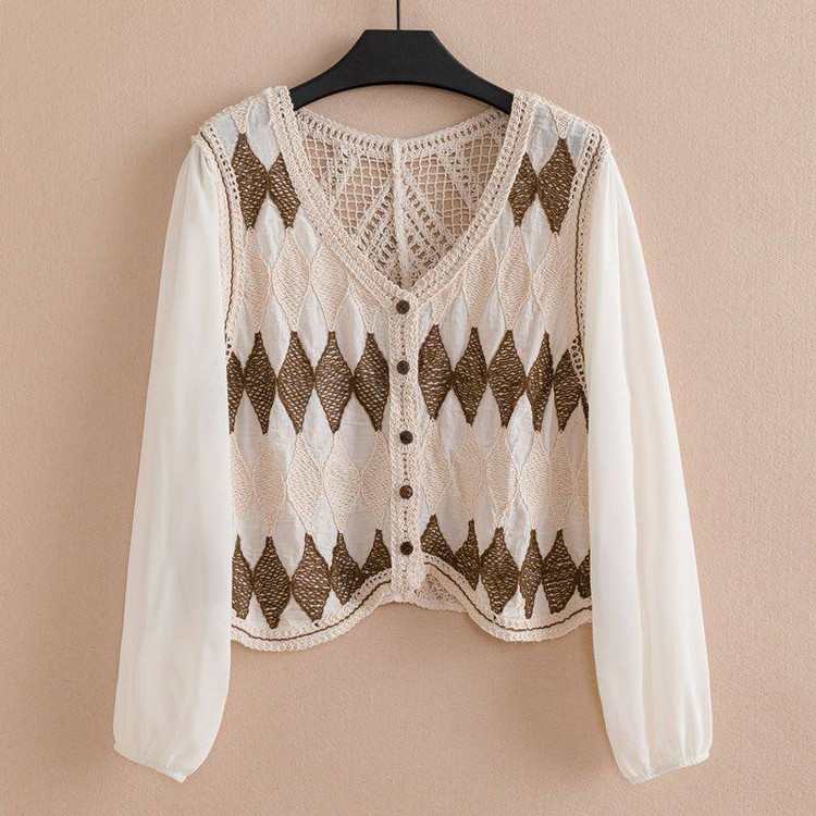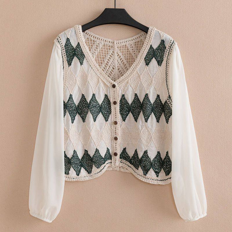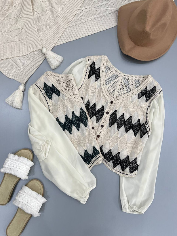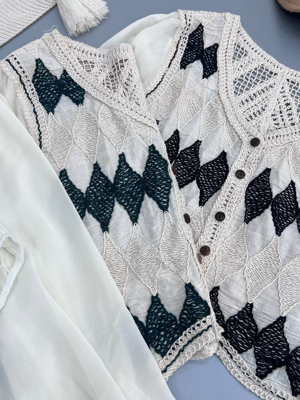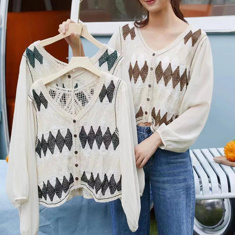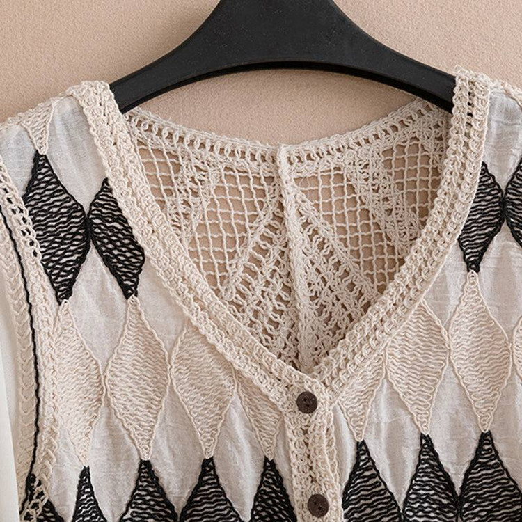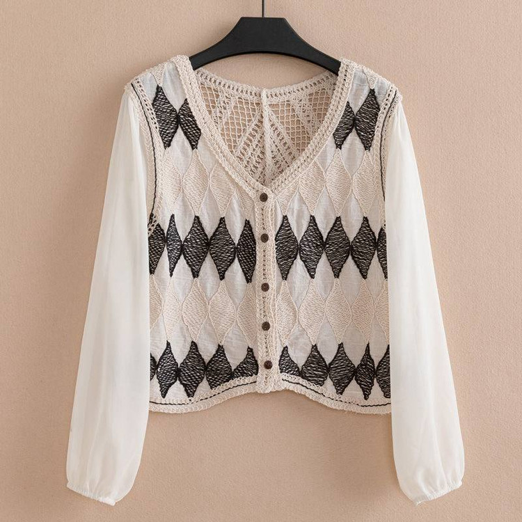 شومیز زنانه خارجی قلاب دوزی لوزی ۵۳۶۸